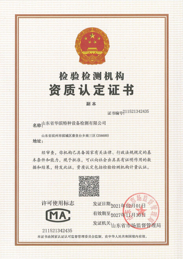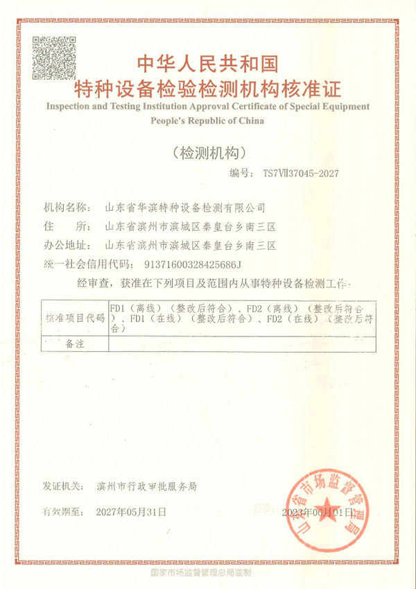 華濱檢測下設山東省華濱特種設備檢測有限公司、山東省華濱計量檢測有限公司。